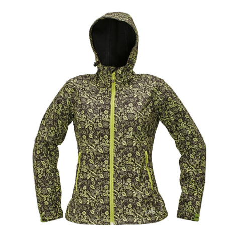 YOWIE PRINT softshell barna/zöld XXL • kapucnis női softshell dzseki mintás anyagból • 3 rétegű kialakítás: a külső réteg alatt TPU mebránnal és polár béléssel • cipzáras oldalzsebekkel és 2 belső zsebbel • húzózsinórral szűkíthető kapucnival és • tépő
