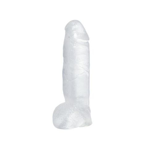 - Áttetsző dildó erezettel és makkal, alján tapadótalppal