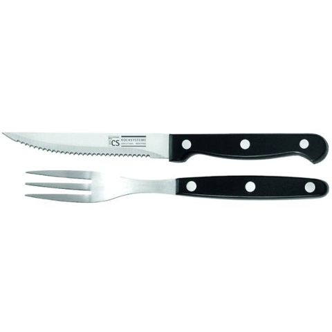 Evőeszközkészlet - steak kés és steak villa, fogazott penge, 2 készlet összesen 4 db evőeszközzel A praktikus, fekete és ezüst színű CS Solingen Argentina steak evőeszköz készlet minden konyha megfelelő és hasznos kiegészítője lesz. Ebben a készletben 2 steak kést és 2 steak villát