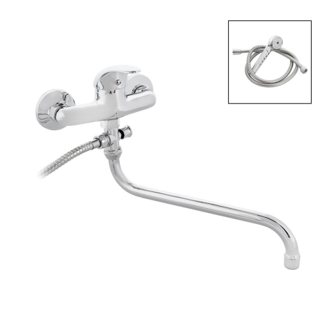 A Cseke JOLLY MIX Króm fali egykaros kerámiabetétes kád és mosdó töltő csaptelep zuhanyszettel (cikkszám: K-122a) tökéletes választás otthona fürdőszobájába, egyesítve a modern dizájnt és a fejlett technológiát. Ez a kád és mosdó töltő csaptelep ideális v