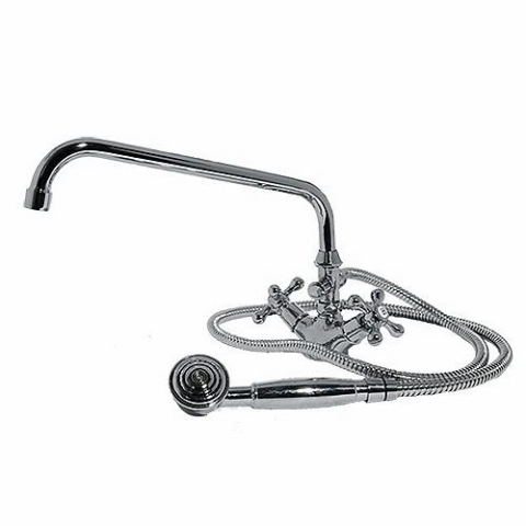 Réz Álló KMT Félfordítós zuhanyváltóval Zuhany szettel (150cm-es normál fém zuhanycső, vízkőmentes egyszerű króm zuhanyfejjel, zuhanytartó kockával) Flszerelő szettel Bekötőcsővel Tömítésekkel