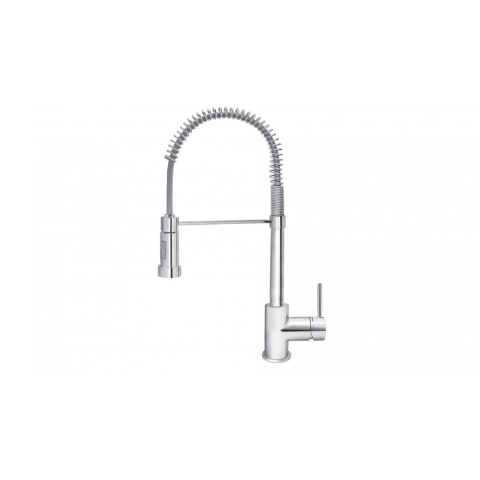 A Cseke ZERRO króm álló egykaros kerámiabetétes mosogató csaptelep rugós kifolyóval és állítható szórófejjel (cikkszám: JZ-6A) a modern konyhák kényelmes és esztétikus kiegészítője. Az egykaros kivitelű csaptelep egyszerű használata és praktikus funkciói