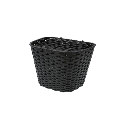 Csepel fix rögzítésű első kosár, rattan hatású műanyag, fedeles, fekete