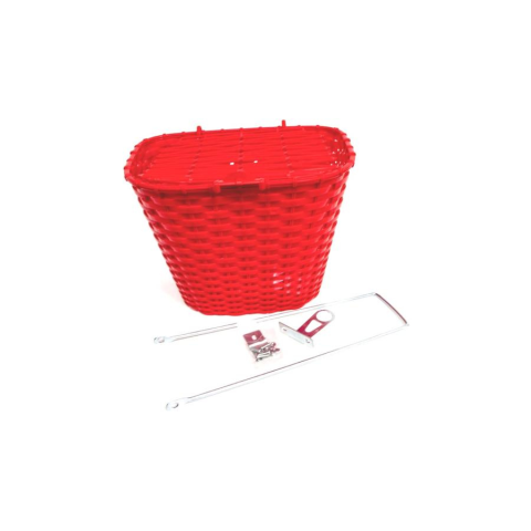 Csepel fix rögzítésű első kosár, rattan hatású műanyag, fedeles, piros