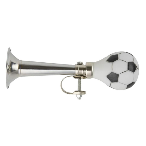 Csepel kerékpár duda, fém, egy szólamú, egyenes, krómozott, focilabdás