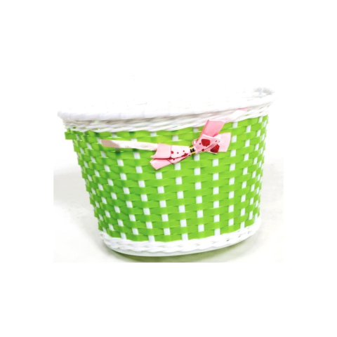 1 kép CSEPEL műanyag kosár gyerek kerékpárra, 22x15x25 cm, műanyag, masnis, zöld-fehér