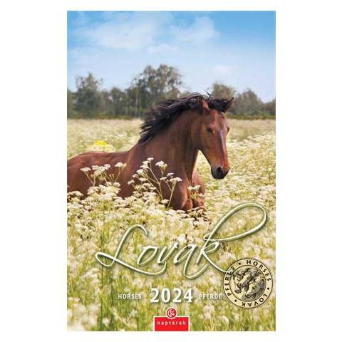 Naptár, fali, CSG Lovak -méret: 210 x320 mm -tartalom: 6 lap + boritó + hátkarton -kivitel: 115 g műnyomó, 4 színnyomás -spirálozott, egyenként fólia tasakban -naptár rész: magyar, angol, német nyelven, magyar ünnepek és névnapokkal, napkelte, na
