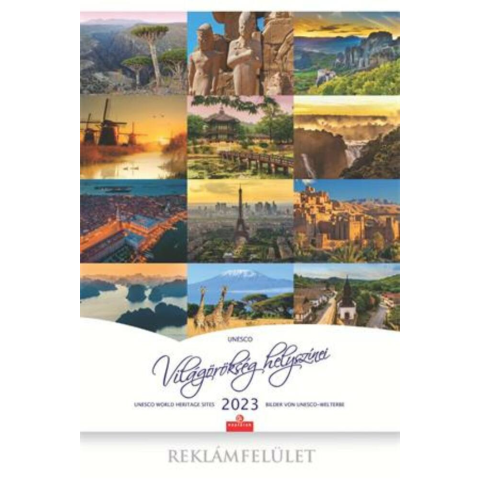A Naptár, fali, CSG Világörökség helyszínei (NCU013) -méret: 400x580 mm + 40 mm -tartalom: 13 lap + boritó + hátkarton -lap típusa 135 g, műnyomó papírból, 4 színnyomással -szélesen sapkázott, egyenként fólia tasakban -naptár rész: magyar, angol, néme