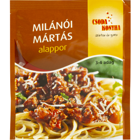 2 evőkanál olajon pirítson meg 10 dkg gombát és 10 dkg sonkát. Öntsön hozzá 3 dl hideg vizet, a tasak tartalmát és 1-2 csapott mokkáskanál (kb. 4 g) konyhasót, majd jól keverje össze.