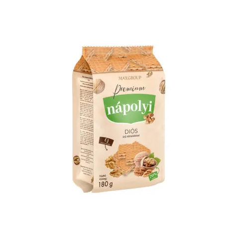 MaxGroup Prémium Nápolyi 180g Diós Rövid leírás MaxGroup Prémium Nápolyi 180 g-os kiszerelésben érkezik, amely a roppanós nápolyi rétegek és a gazdag diós krém találkozásával kápráztat el. A kiváló minőségű alapanyagokból készült recept az ízletes de