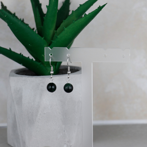 Aranykő 8mm-es ásványból készült fülbevaló A fülbe tehető rész nemesacélból készült. Mélyzöld színű szépen csillogó. Aranykő: A kőhöz vitalitást fokozó, szorongást csökknető, örömérzetet növelő és kiegyensúlyozó, nyugtató hatást szoktak kapcsolni.