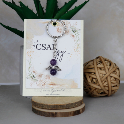 1 kép csucsajandek Ásvány angyalka kulcstartó-Lepidolit