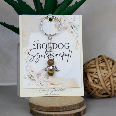 8 mm-es mokait ásványból készült angyalka kulcstartó. Teljes hossz:7cm Választható kísérő kártyával, akár egyedi szöveggel is kérhető. Amit a mokaitról érdemes tudni: Ez a kő jó választás érzelmi védelmezőként, mert növeli az önértékelést, ösztönzi az á