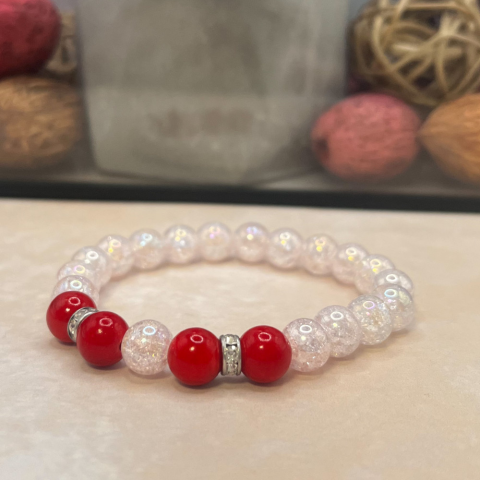 Rózsaszín aura hegyikristály és piros jáde ásványból készült karkötő nemesacél strassz dísszel Ásványok mérete 8mm Méret kiválasztásához mérd meg a csuklód !
