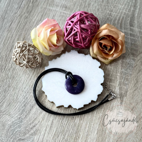 1 kép csucsajandek Fánk medál bőrhatású nyakláncon - Lepidolit