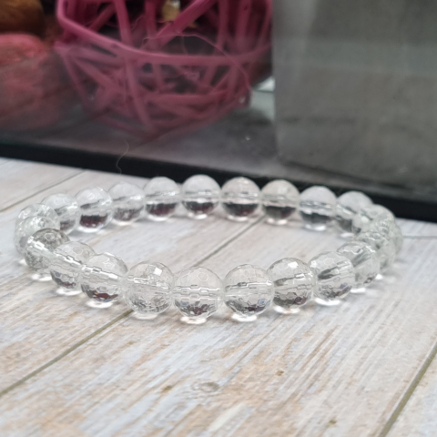 A karkötőn lévő gyöngyök, valódi ásványok rugalmas szilikonra vannak fűzve, több méretben rendelhető Fazettált hegyikristály karkötő 8mm-es valódi ásványból készül. A legértékesebb kristály. Gyakran javasolják a kiegyensúlyozottság növelésére, kime