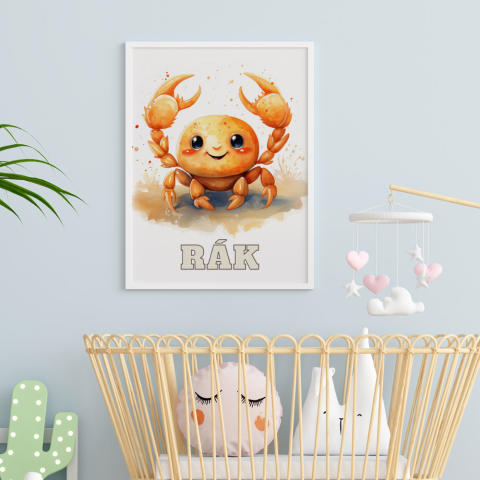 Egyedi horoszkópos kép gyerekszobába. Vastag prémium papírra nyomtatva FEHÉR műanyag kerettel. A4-es méret.