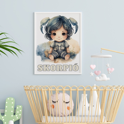 Egyedi horoszkópos kép gyerekszobába. Vastag prémium papírra nyomtatva FEHÉR műanyag kerettel. A4-es méret.
