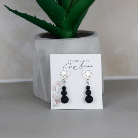 Matt ónix 8-6-4 mm-es ásványból készült fülbevaló. A fülbe tehető rész nemesacélból készült. Ónix: Az ónixot támogató, erőt adó kőnek tartják. Gyakran ajánlják a negatív érzelmek ( Félelem, indulatosság, szomorúság ) feloldására vagy elkerülésére. Csilla