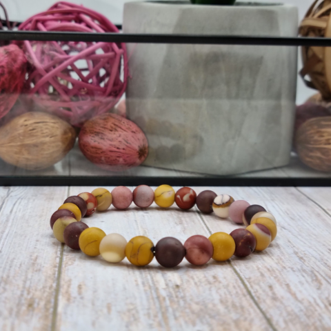 A karkötőn lévő gyöngyök, valódi ásványok rugalmas szilikonra vannak fűzve, több méretben rendelhető 8mm-es matt mokait ásványból készült karkötő. Amit a mokaitról érdemes tudni: Ez a kő jó választás érzelmi védelmezőként, mert növeli az önértékelést
