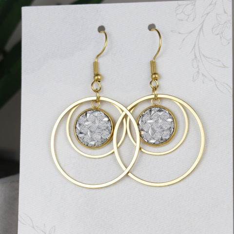 Nemesacél alapból készített druzy fülbevaló. Teljes hossz 5,5cm