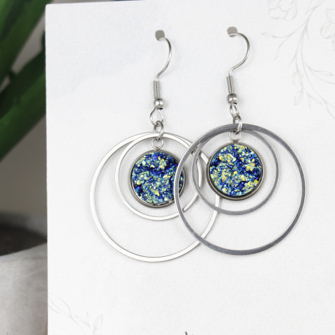 Nemesacél alapból készített druzy fülbevaló. Teljes hossz 5,5cm