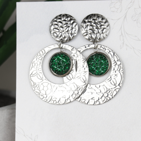 Nemesacél alapból készített druzy fülbevaló. Teljes hossz 5,5cm