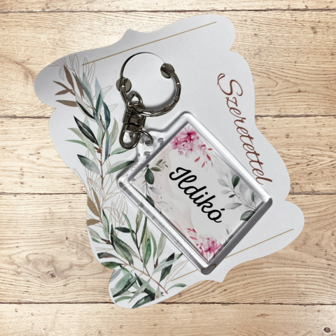 Névre szóló kulcstartó Plexiből készült, a minta fotópapírra nyomtatott és a kulcstartó mind a kettő oldalán látható Fotó mérete 45*35mm Bármilyen névvel kérhető!