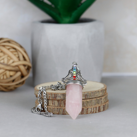 Rózsakvarc csúcsmedál, buddhával Medál: 12x60mm A legismertebb kövek közé tartozik. Színe különböző árnyalatú rózsaszín. A barátság, szeret és szerelem köve. Az egyik legnagyobb energiát adó kő. Eltávolítja a negatív energiát. Úgy tartják fokozza a termé