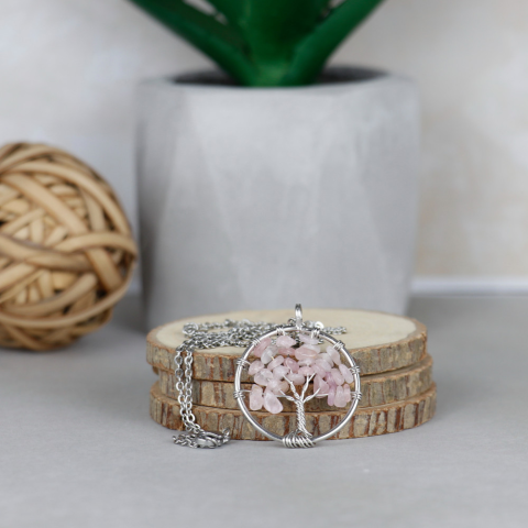 1 kép csucsajandek Rózsakvarc életfa medál, lánccal