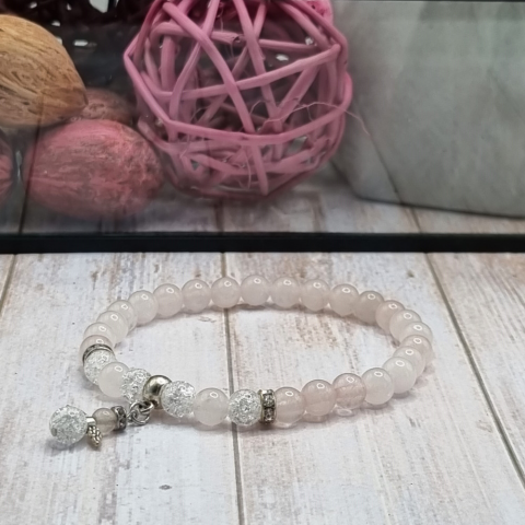 Rózsakvarc karkötő 8mm-es ásványból, rugalmas szálra fűzve. A legismertebb kövek közé tartozik. Színe különböző árnyalatú rózsaszín. A barátság, szeret és szerelem köve. Az egyik legnagyobb energiát adó kő. Eltávolítja a negatív energiát. Úgy tartják foko