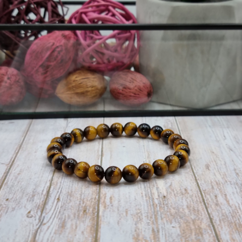 A karkötőn lévő gyöngyök 8mm valódi ásványok, rugalmas szilikonra fűzve. Több méretben rendelhető A tigrisszem védelmet nyújtó kő, régen talizmánként viselték. Csakra: Napfonatcsakra Csillagjegyei: Nyilas, Skorpió, Oroszlán, Szűz, Ikrek A karkötő 8mm-e