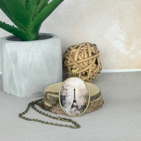Üveglencsés medál, lánccal-Eiffel torony Medál: 3cm x 4 cm (bronz alap) Lánc hossza:45cm (bronz)
