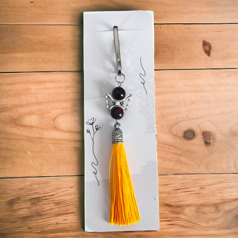 Vörös tigrisszemmel készült táskadísz Teljes hossz 12,5cm