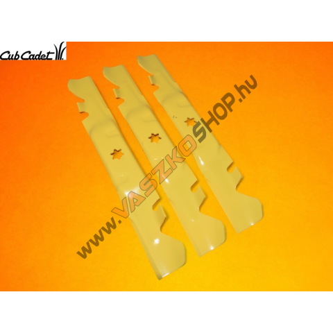 Cub Cadet XZ5L137 , XT3QS137 fűnyíró traktorkés Gyári cikkszám: 742-05056-X , 742-05068A 137 cm-es vágóasztalhoz 3 késes készlet Méretek: Kés hossza: 468 mm Szélesség / Vastagság: 63 mm / 4 mm