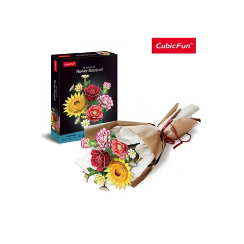 Különleges 3D puzzle amiből egy virágcsokor rakható ki. Jellemzők: - Olló és ragasztó nélküli összeállítás - 285 darabos - Elkészült méret: 18,7 x 26,7 x 29,4 cm