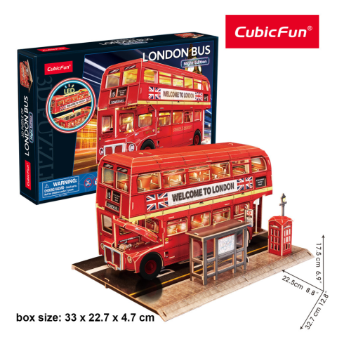 London egyik szimbóluma a piros emeletes busz. 172 db 3d puzzle elemből megépítheted. LED-es, világítós verzió, szoba dekorációnak nagyon látványos. Mérete: 33 x 22.5 x 17.5cm