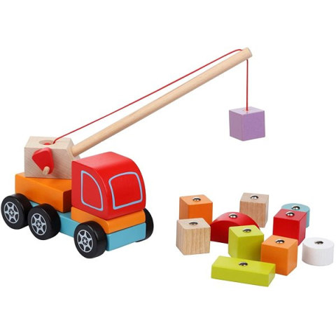 Játék autó - 3 éves kortól ajánlott A nehéz vagy terjedelmes rakományok mozgatásának kemény munkáját a kisfiúk teljesen játékosan megoldják a Cubika 13982 autódaruval. A daru forgatható karjának végén egy mágnessel ellátott fa kocka tal