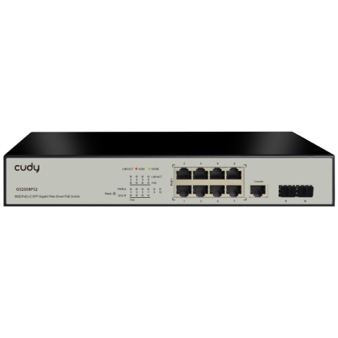 1 kép Cudy Switch 8x1000Mbps (8xPOE+) + 2x1000Mbps SFP, Menedzselhető, Fémházas, Asztali, GS2008PS2 (GS2008PS2)
