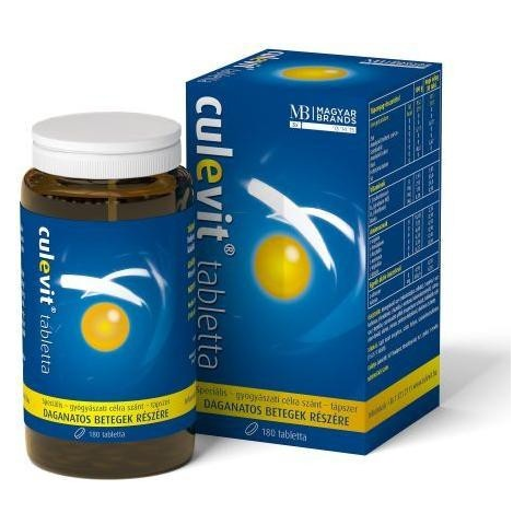 A Culevit tabletta szedése ajánlott rosszindulatú daganatos betegségben szenvedők részére, továbbá műtétek, súlyos sérülések, betegségek utáni lábadozás állapotában a szervezet regenerálódásának elősegítésére. A Culevit tabletta aktív összetevőinek - bizo