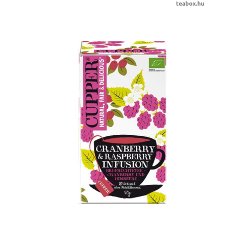 CUPPER Áfonya & Málna bio tea - 20 db teafilter. Egy csodálatosan frissítő keverék, amely ötvözi az áfonya csábító fanyar ízét a málna intenzív édes ízével. Koffeinmentes! Termékleírás Összetevők hibiszkusz*, csipkebogyó*, csalán*, édesgyökér*, termész