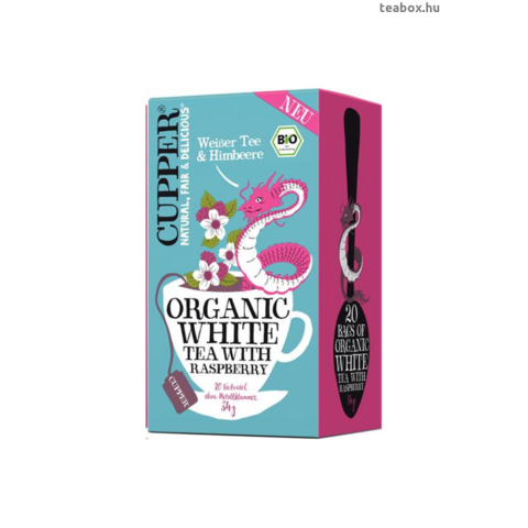 CUPPER Fehér tea & Málna bio tea - 20 db teafilter. Termékleírás Összetevők: fehér tea*, természetes málna ízesítés* (6%), málna darabok* (1%), természetes feketeribizli ízesítésl. *Összetevők: Ellenőrzött ökológiai gazdálkodásból.