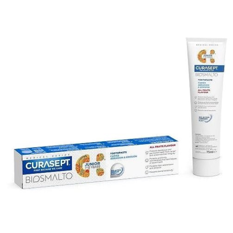 Fogkrém - ínyvédelem, fogszuvasodás elleni védelem, zománcvédelem, fluoriddal, érzékeny fogakra, gyümölcsös ízű, 75 ml kiszerelésben kapható A CURASEPT Biosmalto Junior gyümölcs ízű gyermek fogkrém megakadályozza a fogszuvasodás és a fogkő kialakulását, remineralizálja a fogzománcot, erősíti a kemény szöveteket a fogak áttörésekor, védi a