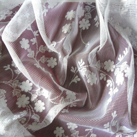 1 kép Curtain Jacquard függönyanyag, fehér apróvirágos, maradék darab: 0,7 m