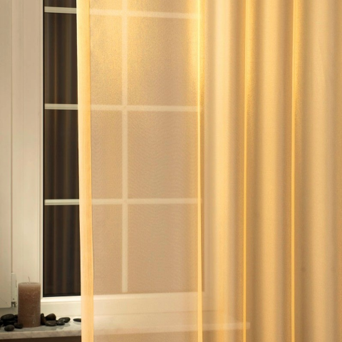 Fényáteresztő függöny méteráru, félorganza. Magasság: 300 cm. Legkisebb rendelhető mennyiség 1 méter. Liliana félorganza függöny anyag, 300 cm magas, csodálatos, sejtelmesen csillogó, félorganza függönyanyag, ólomzsinóros. Egyesíti magában az organza s