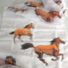 Fényáteresztő függönyanyag, lovas mintával. Maradék darab: 0,50 m (50 cm x 235 cm). 290 cm magas, ólomzsinóros, fényáteresztő függöny anyag. Lovas mintával. Az aljától 55 cm-re szövéshiba, szálhúzás, ezért a hasznos magassága 235 cm. Összetétel: 100%