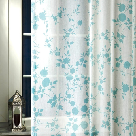 1 kép Curtain LÜBECK, türkiz nyomott virágmintás, batiszt függöny méteráru
