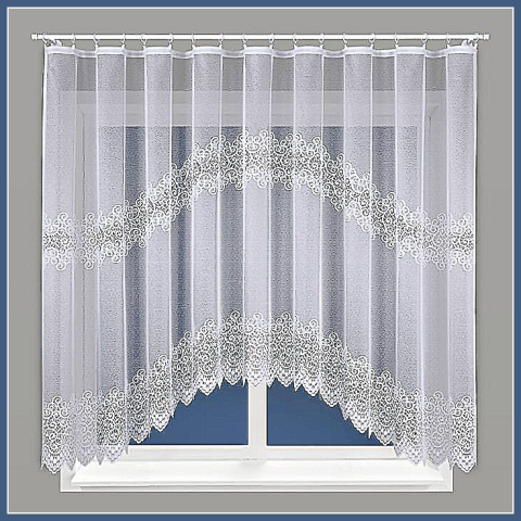 Teljes Curtain VIOLETTA, alul és középen íves, csipkés fehér jacquard panoráma függöny termékleírás