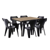 Keter Carter 6+1 kerti bútor garnitúra szett kőris-grafit-Esztétikus, elegáns megjelenés Szett tartalma: 1 db Porto 160 műanyag kerti asztal (kőris színben, fekete fémvázzal) 6 db Dante műanyag kerti szék (grafit színben, karfával, egymásra rakható)