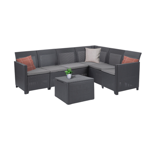1 kép CURVER Claire VII 6 személyes sarokgarnitúra párnatartós asztallal